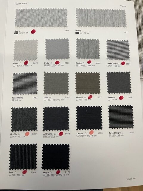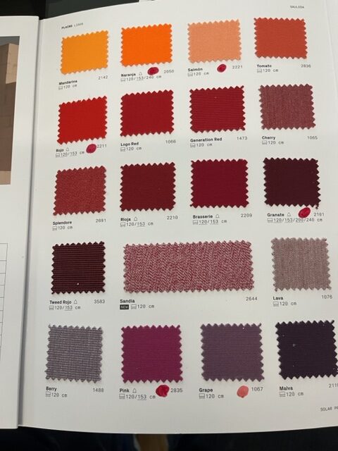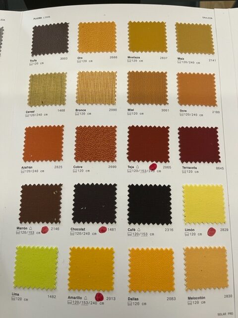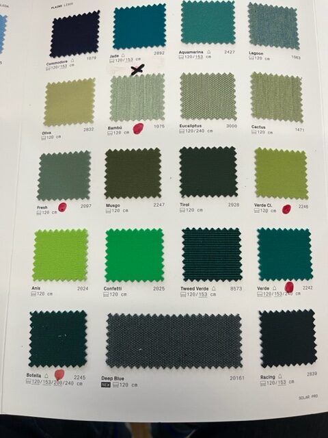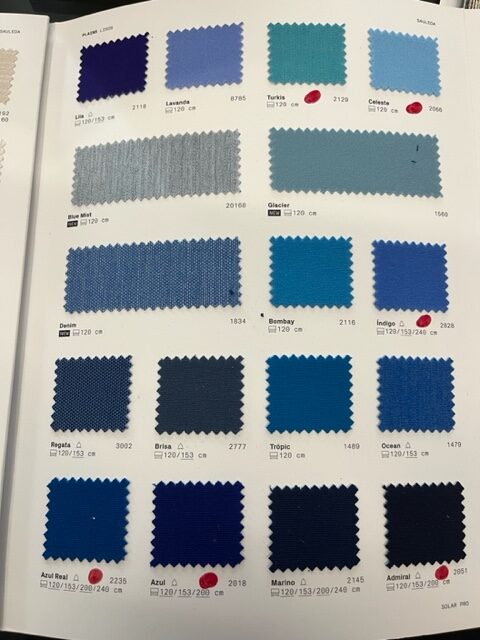Uzorci svih tenda (crvenom točkicom označeni su uzorci na skladištu, ostalo je u roku 30 dana):
